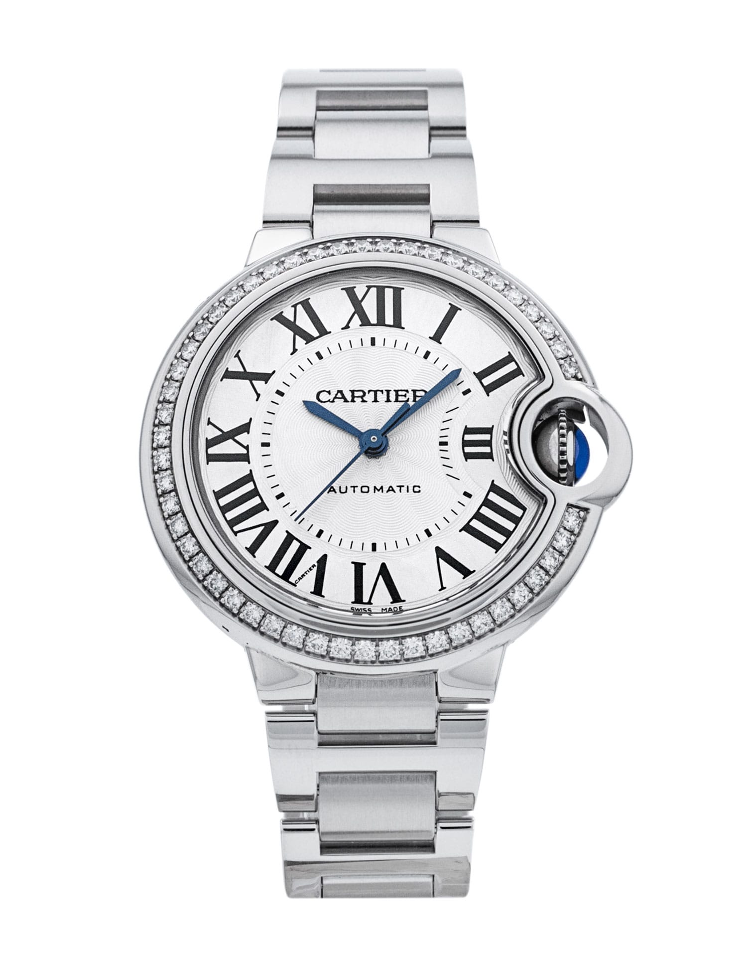 This Cartier Ballon Bleu W4BB0016 has a silver roman numeral dial and a bracelet strap. This Cartier has undergone a thorough inspection of accuracy, functionality and condition at our Cartier certified service centre to determine the level of reconditioning required to meet our strict standards. It has also been checked against our records to ensure authenticity. All our watches have a 24-month warranty for your peace of mind.