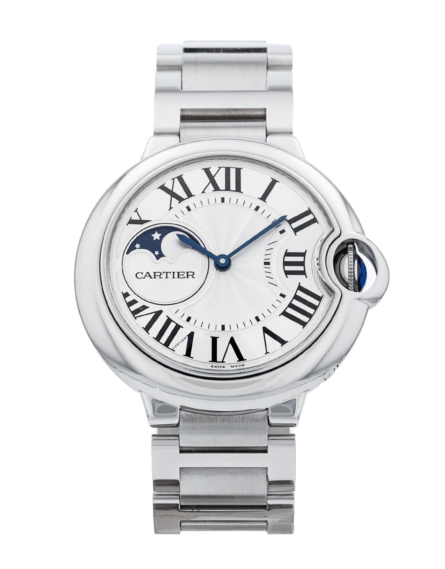 This Cartier Ballon Bleu WSBB0021 has a silver roman numeral dial and a bracelet strap. This Cartier has undergone a thorough inspection of accuracy, functionality and condition at our Cartier certified service centre to determine the level of reconditioning required to meet our strict standards. It has also been checked against our records to ensure authenticity. All our watches have a 24-month warranty for your peace of mind.