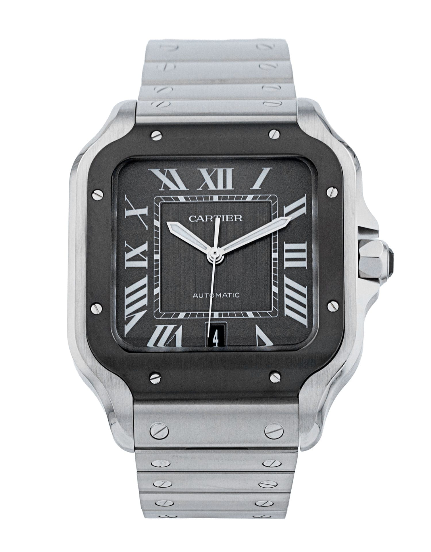 This Cartier Santos De Cartier WSSA0037 has a grey roman numeral dial and a bracelet strap. This Cartier has undergone a thorough inspection of accuracy, functionality and condition at our Cartier certified service centre to determine the level of reconditioning required to meet our strict standards. It has also been checked against our records to ensure authenticity. Our watches have a 24-month warranty for your peace of mind, in conjunction with any remaining manufacturer’s warranty from new or from service.