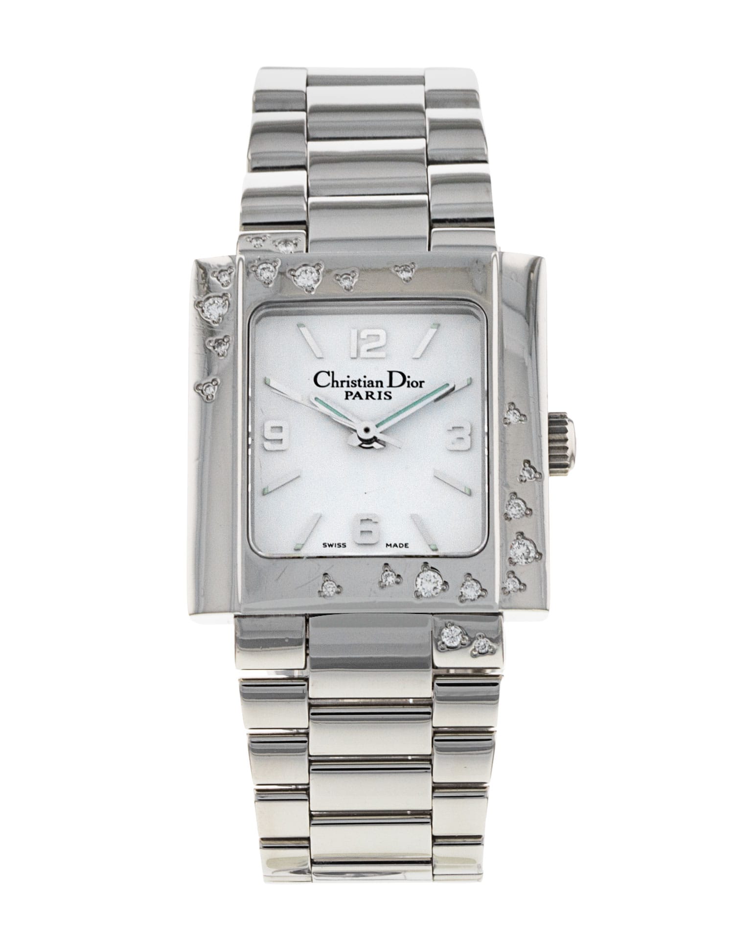 This Christian Dior Riva D98-1014 has a white quarter arabic dial and a bracelet strap. Due to age, this Christian Dior may not fall within our typical expected tolerances for timekeeping, and is no longer suitable for use in wet environments or submersion in water. In the interests of preserving original features, utmost care has been taken to sympathetically restore this watch. It has also been referenced against technical documents and manufacturer records where available to ensure authenticity and a clean history.