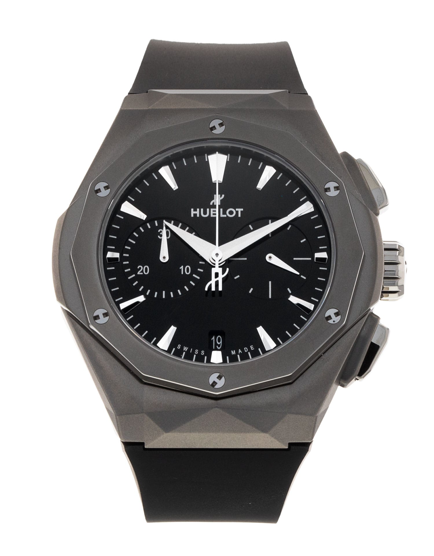 This Hublot Classic Fusion 549.NI.1270.NI.ORL23 has a black dial and a rubber strap. This Hublot has undergone a thorough inspection of water resistance, accuracy, functionality and condition to determine the level of reconditioning required to meet our strict standards. It has also been referenced against technical documents and manufacturer records where available to ensure authenticity and a clean history. Our watches have a 24-month warranty for your peace of mind, in conjunction with any remaining manufacturer’s warranty from new or from service.