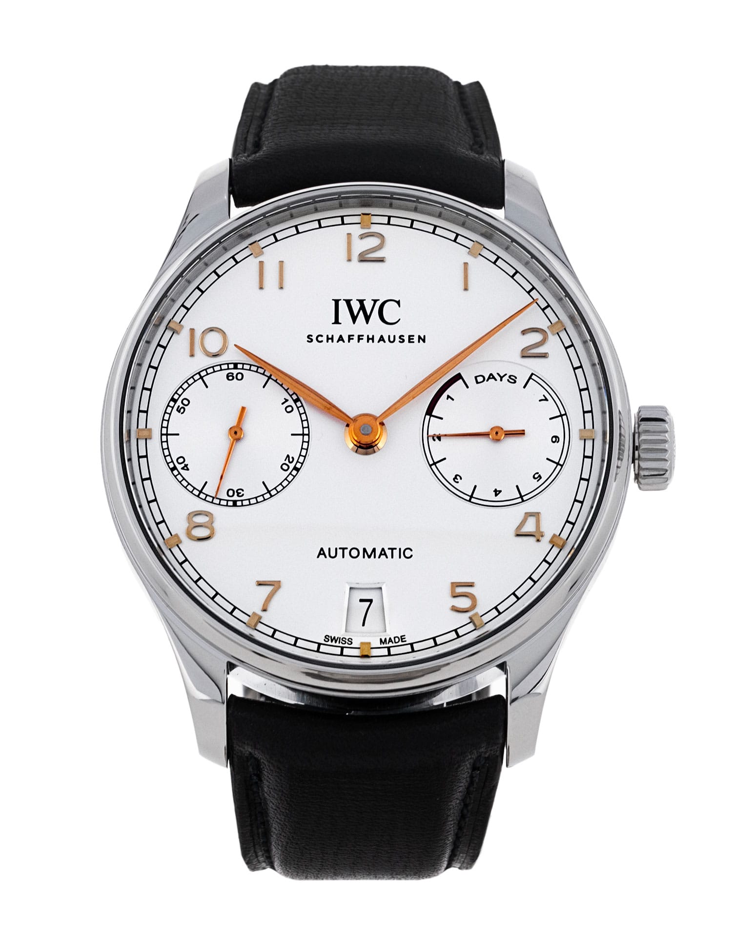 This IWC Portugieser Automatic IW500704 has a silver arabic dial and a leather strap. This IWC has undergone a thorough inspection of accuracy, functionality and condition at our IWC certified service centre to determine the level of reconditioning required to meet our strict standards. It has also been checked against our records to ensure authenticity. All our watches have a 24-month warranty for your peace of mind.