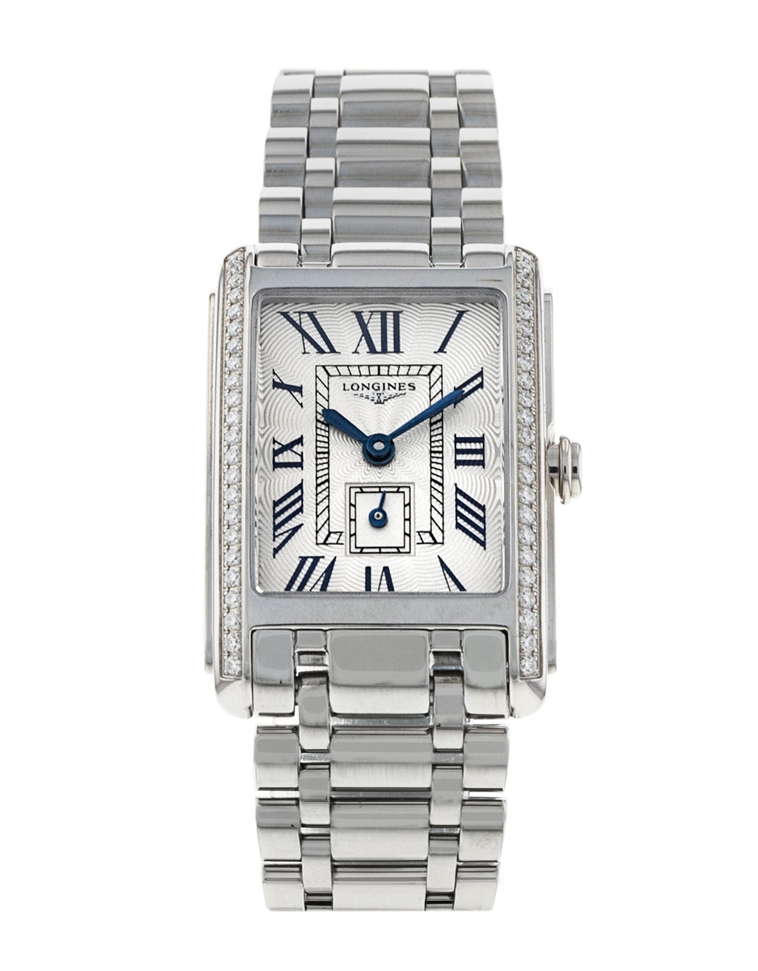 This Longines Dolce Vita L5.255.0.71.6 has a silver roman numeral dial and a bracelet strap. This Longines has undergone a thorough inspection of accuracy, functionality and condition at our Longines certified service centre to determine the level of reconditioning required to meet our strict standards. It has also been checked against our records to ensure authenticity. All our watches have a 24-month warranty for your peace of mind.
