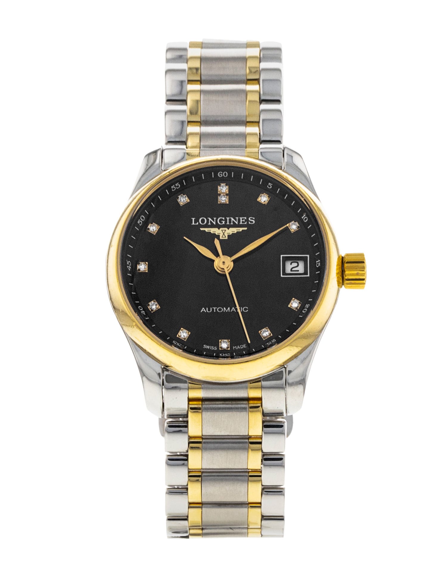 This Longines Master Collection L2.128.5.57.7 has a black diamond dial and a bracelet strap. This Longines has undergone a thorough inspection of accuracy, functionality and condition at our Longines certified service centre to determine the level of reconditioning required to meet our strict standards. It has also been checked against our records to ensure authenticity. All our watches have a 24-month warranty for your peace of mind.