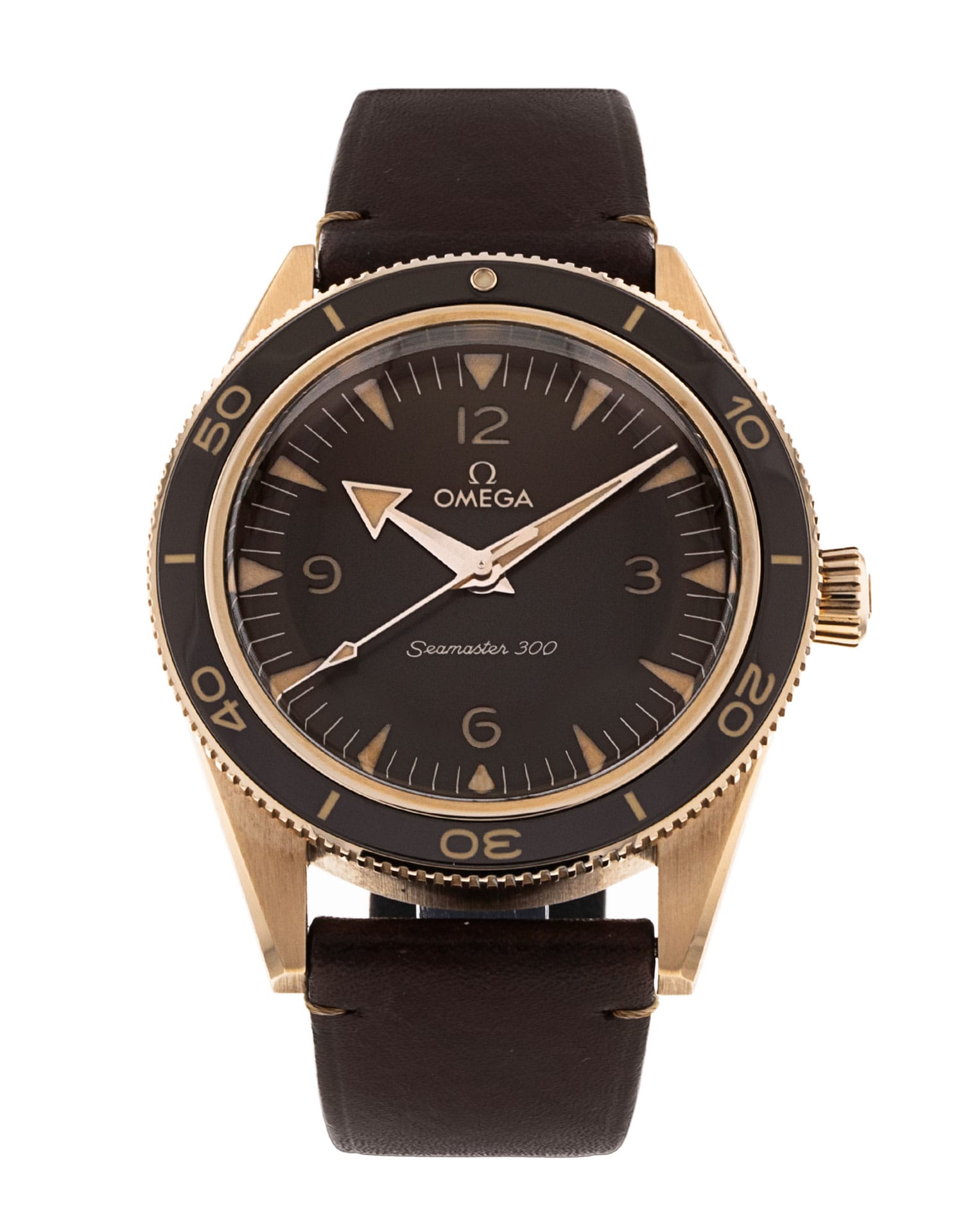 This Omega Seamaster 300 234.92.41.21.10.001 has a brown quarter arabic dial and a leather strap. This Omega has undergone a thorough inspection of accuracy, functionality and condition at our Omega certified service centre to determine the level of reconditioning required to meet our strict standards. It has also been checked against our records to ensure authenticity. Our watches have a 24-month warranty for your peace of mind, in conjunction with any remaining manufacturer’s warranty from new or from service.