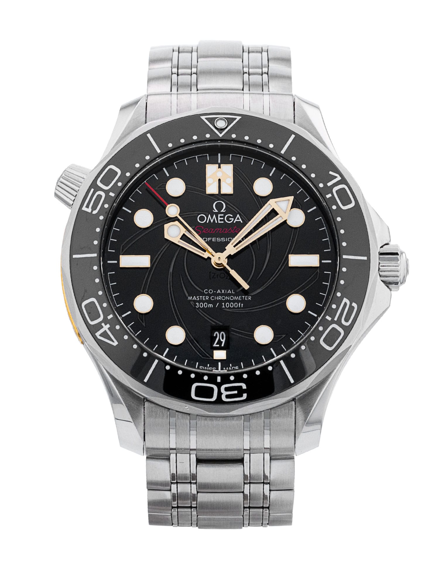 This Omega Seamaster Diver 300m 210.22.42.20.01.004 has a black dial and a bracelet strap. This Omega has undergone a thorough inspection of accuracy, functionality and condition at our Omega certified service centre to determine the level of reconditioning required to meet our strict standards. It has also been checked against our records to ensure authenticity. All our watches have a 24-month warranty for your peace of mind.