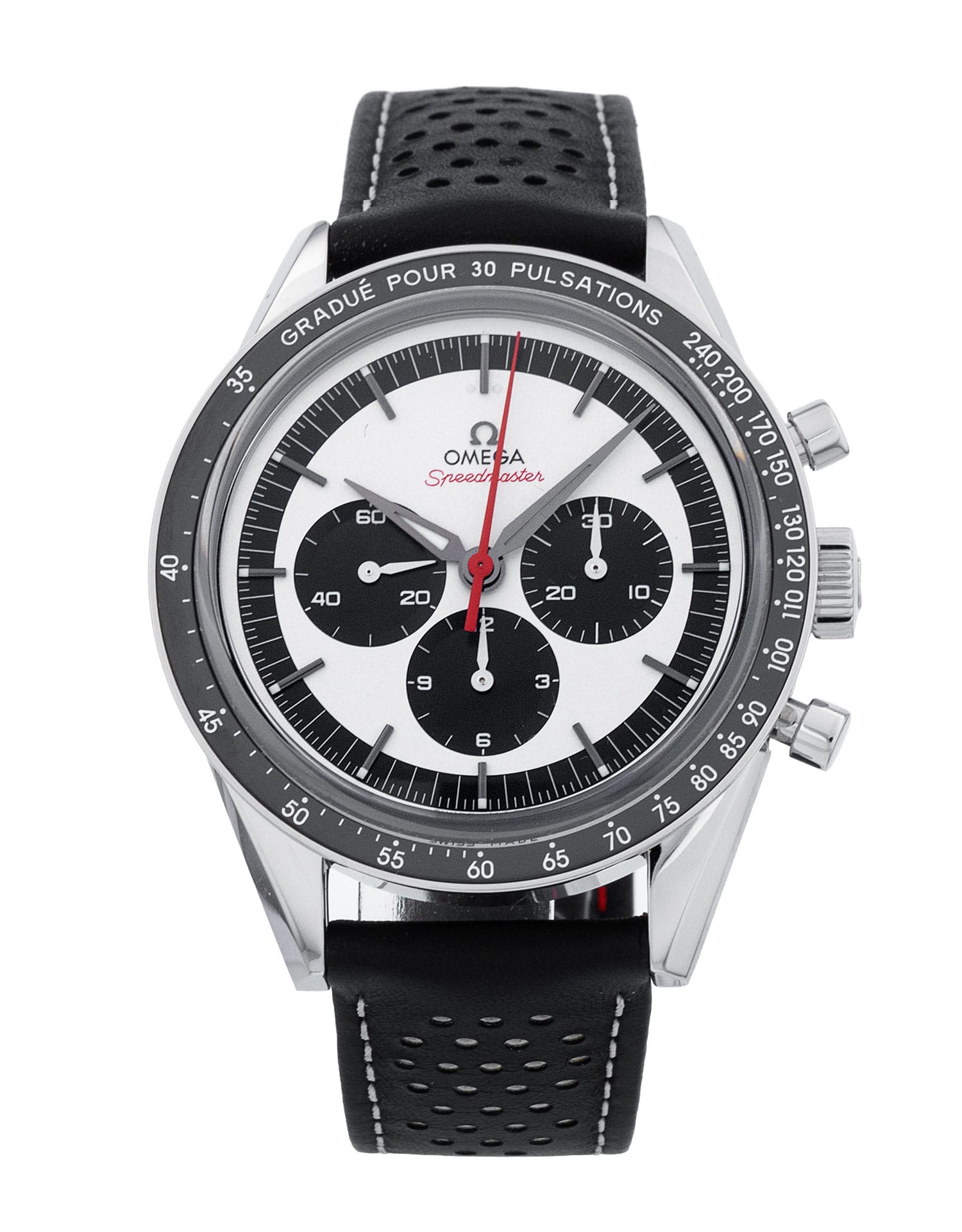 This Omega Speedmaster CK2998 311.32.40.30.02.001 has a silver baton dial and a leather strap. This Omega has undergone a thorough inspection of accuracy, functionality and condition at our Omega certified service centre to determine the level of reconditioning required to meet our strict standards. It has also been checked against our records to ensure authenticity. All our watches have a 24-month warranty for your peace of mind.