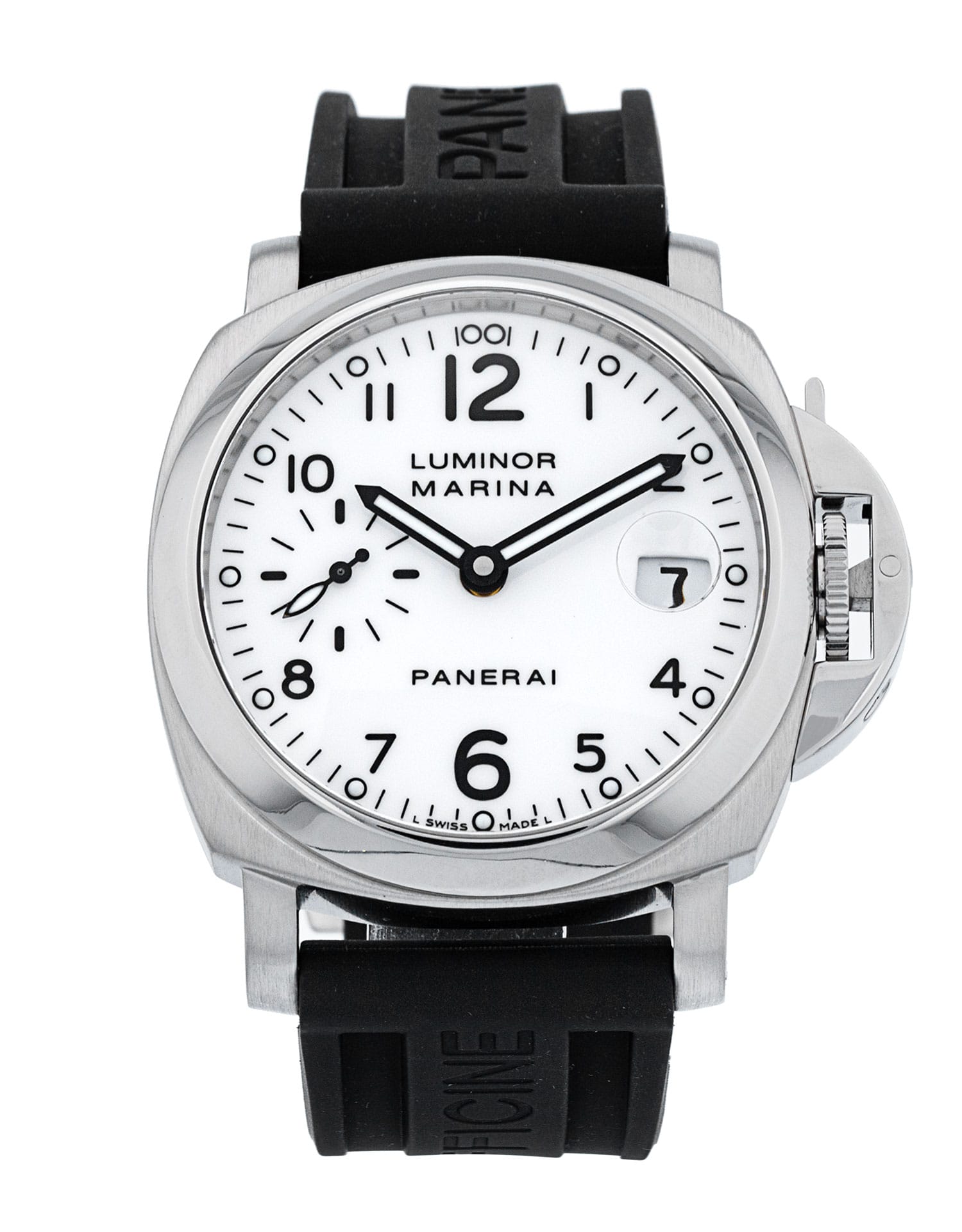 This Panerai Luminor Marina PAM00049 has a white arabic dial and a rubber strap. This Panerai has undergone a thorough inspection of accuracy, functionality and condition at our Panerai certified service centre to determine the level of reconditioning required to meet our strict standards. It has also been checked against our records to ensure authenticity. All our watches have a 24-month warranty for your peace of mind.