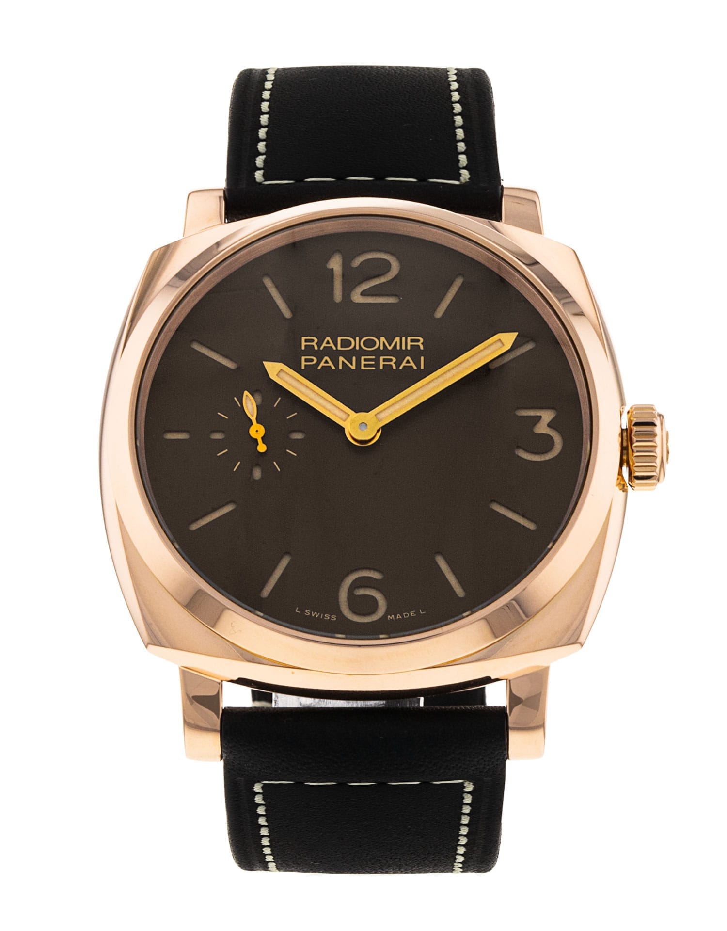 This Panerai Radiomir 1940 PAM00513 has a brown quarter arabic dial and a leather strap. This Panerai has undergone a thorough inspection of accuracy, functionality and condition at our Panerai certified service centre to determine the level of reconditioning required to meet our strict standards. It has also been checked against our records to ensure authenticity. All our watches have a 24-month warranty for your peace of mind.