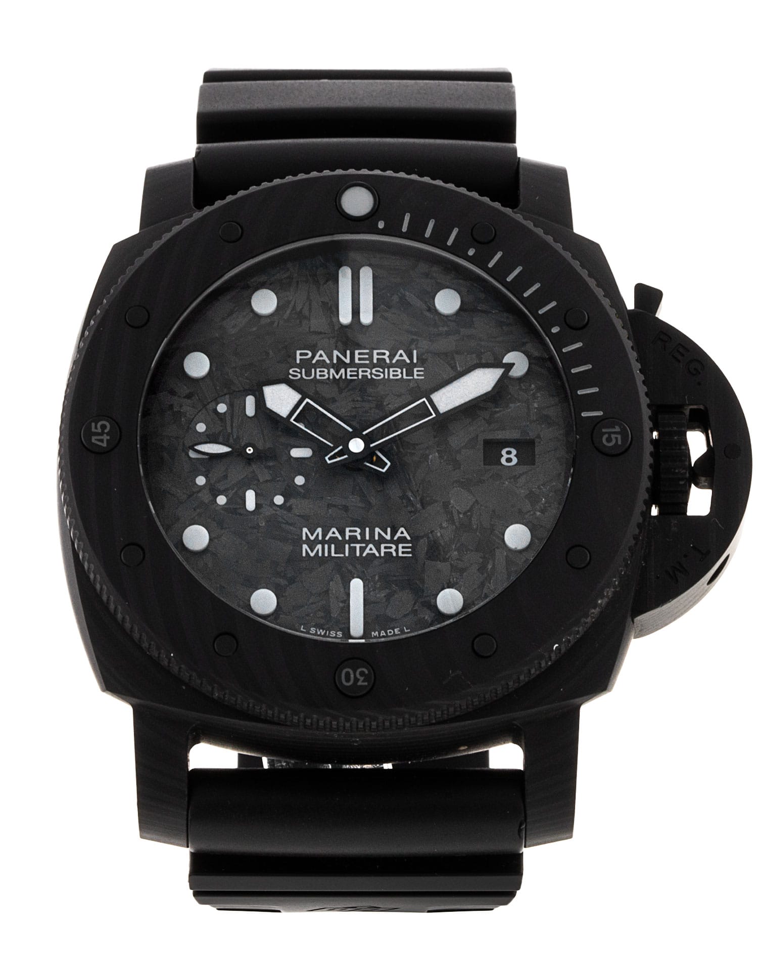 This Panerai Submersible Marina Militare PAM00979 has a black dial and a rubber strap. This Panerai has undergone a thorough inspection of accuracy, functionality and condition at our Panerai certified service centre to determine the level of reconditioning required to meet our strict standards. It has also been checked against our records to ensure authenticity. Our watches have a 24-month warranty for your peace of mind, in conjunction with any remaining manufacturer’s warranty from new or from service.