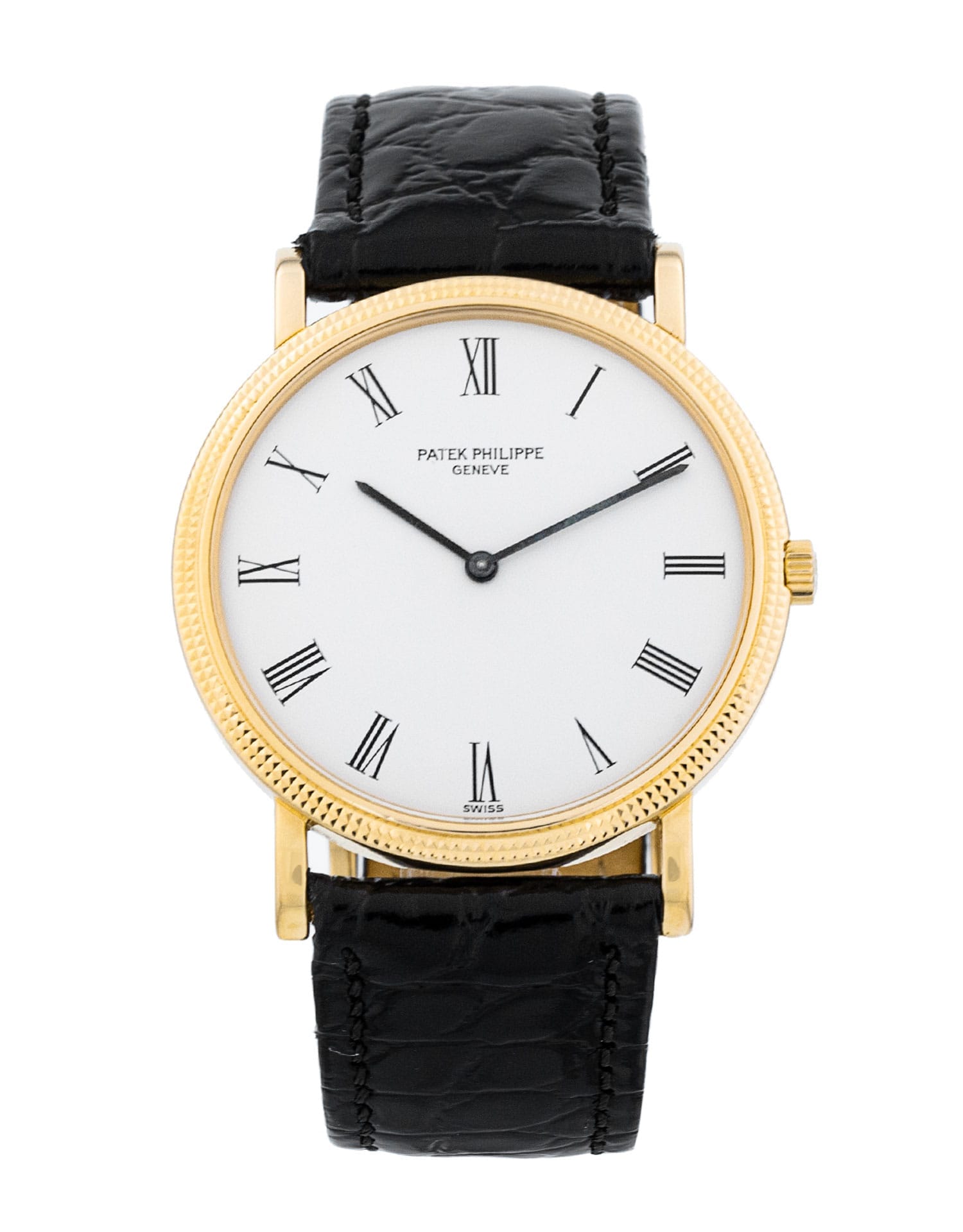 This Patek Philippe Calatrava 3520DJ-011 has a white roman numeral dial and a leather strap. This Patek Philippe has undergone a thorough inspection of water resistance, accuracy, functionality and condition to determine the level of reconditioning required to meet our strict standards. It has also been referenced against technical documents and manufacturer records where available to ensure authenticity and a clean history. All our watches have a 24-month warranty for your peace of mind.