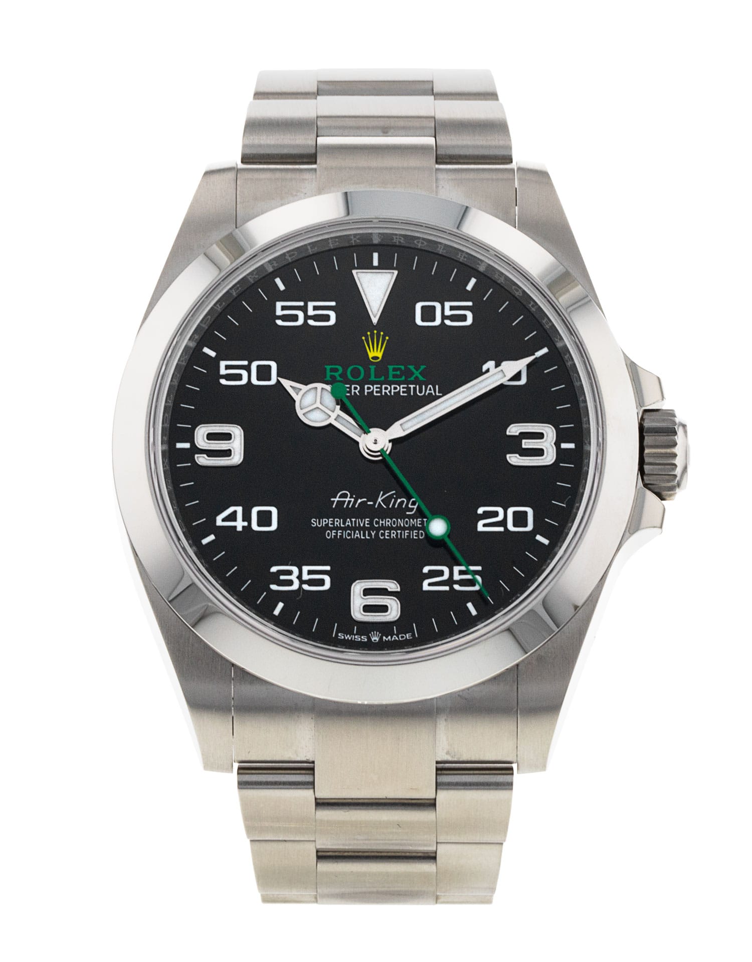This Rolex Air-King 126900 has a black arabic dial and a bracelet strap. This Rolex has undergone a thorough inspection of water resistance, accuracy, functionality and condition to determine the level of reconditioning required to meet our strict standards. It has also been referenced against technical documents and manufacturer records where available to ensure authenticity and a clean history. Our watches have a 24-month warranty for your peace of mind, in conjunction with any remaining manufacturer’s warranty from new or from service. To maintain the manufacturer’s warranty on this watch, it has not been polished in our service centre.