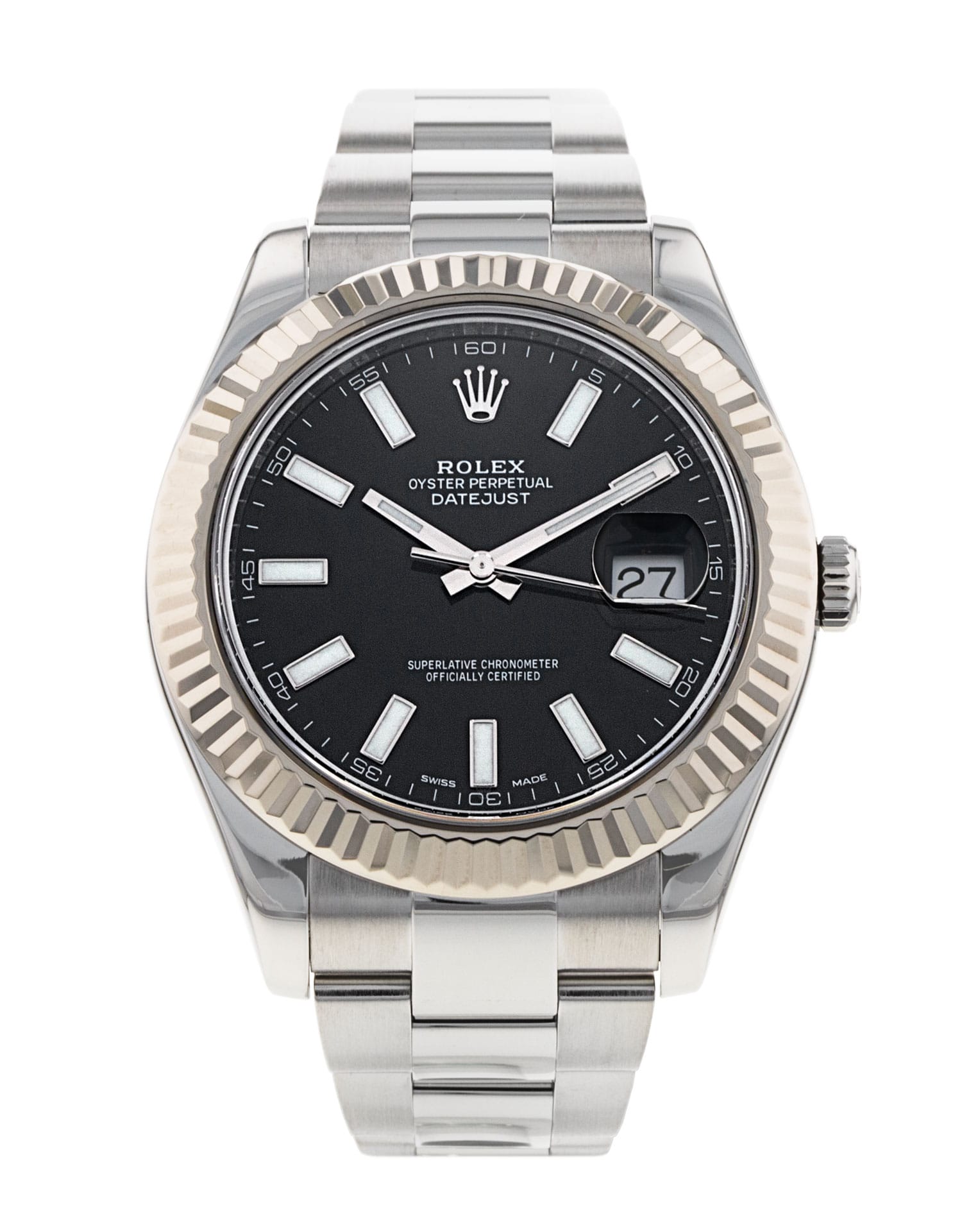This Rolex Datejust II 116334 has a black baton dial and a bracelet strap. This Rolex has undergone a thorough inspection of water resistance, accuracy, functionality and condition to determine the level of reconditioning required to meet our strict standards. It has also been referenced against technical documents and manufacturer records where available to ensure authenticity and a clean history. All our watches have a 24-month warranty for your peace of mind. One of our skilled polishing technicians has removed marks on the case and bracelet of this watch, brought about by daily wear and tear, which is why this watch does not come with the remaining manufacturer’s warranty.