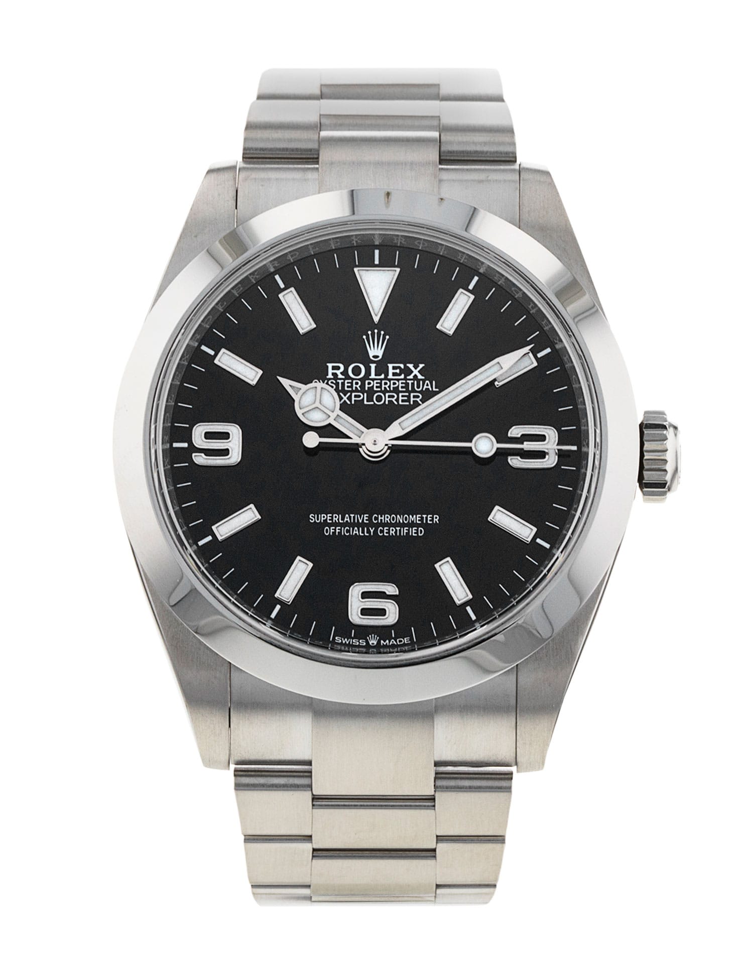 This Rolex Explorer 40 224270 has a black quarter arabic dial and a bracelet strap. This Rolex has undergone a thorough inspection of water resistance, accuracy, functionality and condition to determine the level of reconditioning required to meet our strict standards. It has also been referenced against technical documents and manufacturer records where available to ensure authenticity and a clean history. Our watches have a 24-month warranty for your peace of mind, in conjunction with any remaining manufacturer’s warranty from new or from service. To maintain the manufacturer’s warranty on this watch, it has not been polished in our service centre.