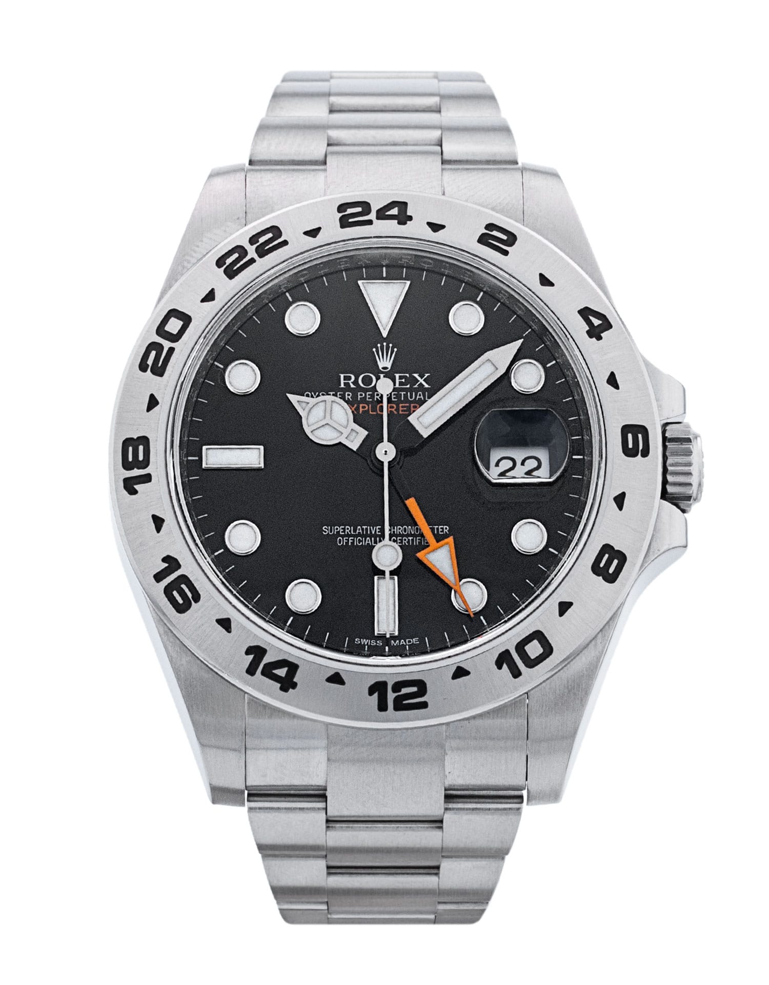 This Rolex Explorer II 216570 has a black dial and a bracelet strap. This Rolex has undergone a thorough inspection of water resistance, accuracy, functionality and condition to determine the level of reconditioning required to meet our strict standards. It has also been referenced against technical documents and manufacturer records where available to ensure authenticity and a clean history. All our watches have a 24-month warranty for your peace of mind. One of our skilled polishing technicians has removed marks on the case and bracelet of this watch, brought about by daily wear and tear, which is why this watch does not come with the remaining manufacturer’s warranty.