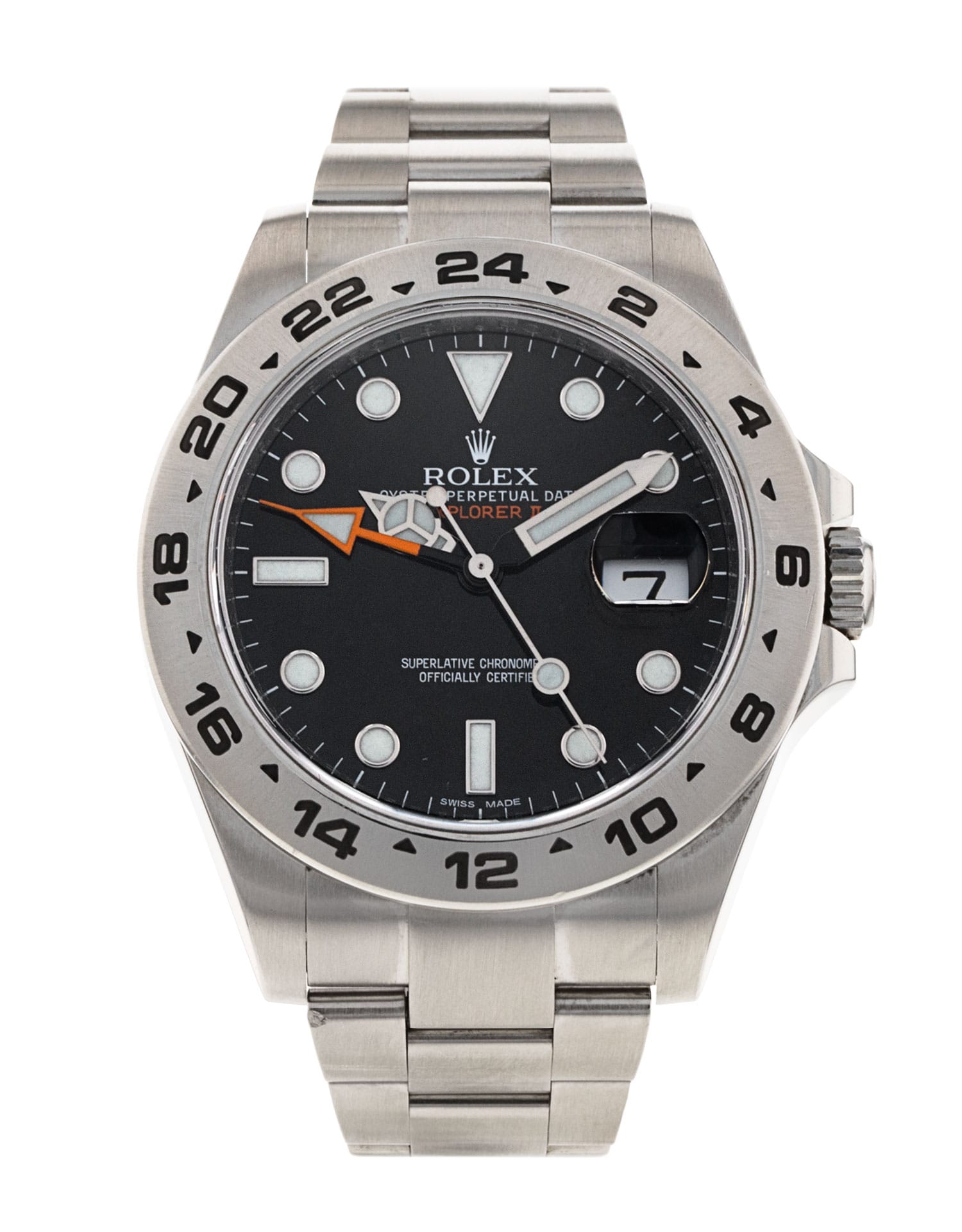 This Rolex Explorer II 216570 has a black dial and a bracelet strap. This Rolex has undergone a thorough inspection of water resistance, accuracy, functionality and condition to determine the level of reconditioning required to meet our strict standards. It has also been referenced against technical documents and manufacturer records where available to ensure authenticity and a clean history. All our watches have a 24-month warranty for your peace of mind. One of our skilled polishing technicians has removed marks on the case and bracelet of this watch, brought about by daily wear and tear, which is why this watch does not come with the remaining manufacturer’s warranty.