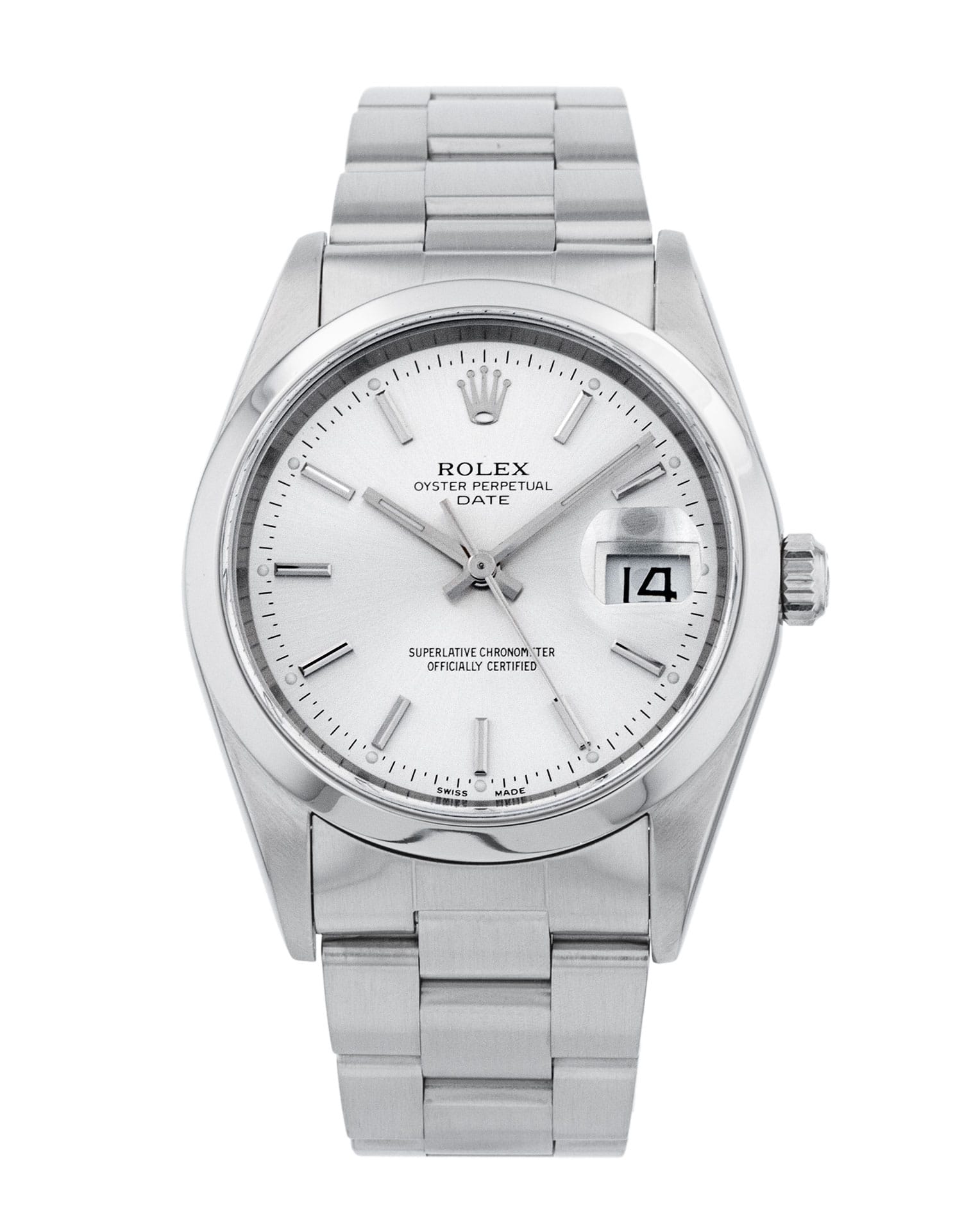 This Rolex Oyster Perpetual Date 15200 has a silver baton dial and a bracelet strap. This Rolex has undergone a thorough inspection of water resistance, accuracy, functionality and condition to determine the level of reconditioning required to meet our strict standards. It has also been referenced against technical documents and manufacturer records where available to ensure authenticity and a clean history. All our watches have a 24-month warranty for your peace of mind. One of our skilled polishing technicians has removed marks on the case and bracelet of this watch, brought about by daily wear and tear, which is why this watch does not come with the remaining manufacturer’s warranty.