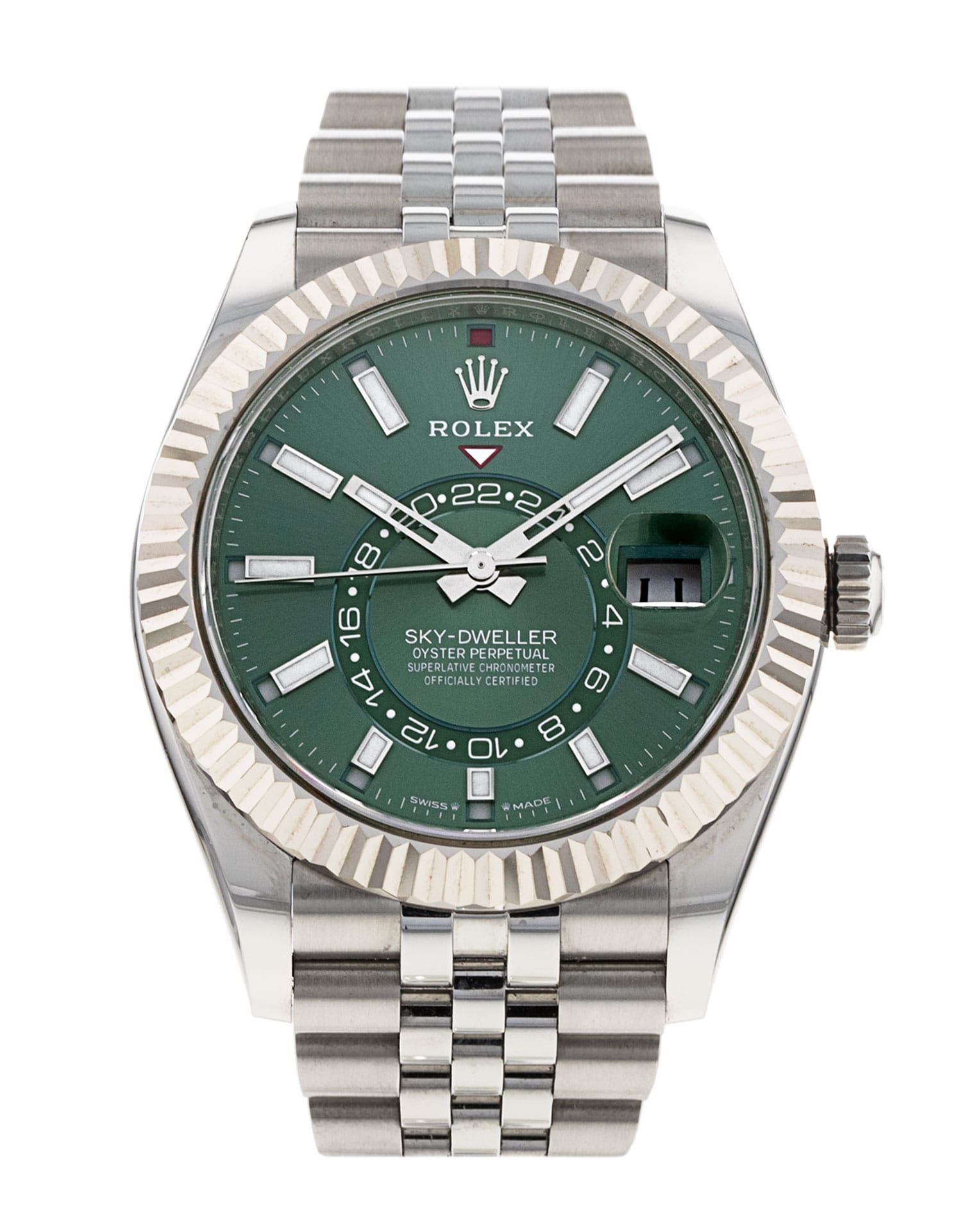 Cette Rolex Sky-Dweller 336934 a un cadran de baton vert et un bracelet en bracelet. L'imperméabilité, la précision, le bon fonctionnement et l'état de cette Rolex ont été minutieusement inspectés afin de déterminer le degré de remise en état requis pour répondre à nos normes strictes. Nous avons également étudié sa documentation technique et les archives du fabricant, quand cela s'est avéré possible, afin de garantir l'authenticité de la montre et son passé irréprochable. Pour votre tranquillité d'esprit, nos montres s'accompagnent d'une garantie de 24 mois, ainsi que de toute période restante sur la garantie du fabricant couvrant un produit neuf ou révisé. Afin de préserver la garantie du fabricant, cette montre n’a pas été polie dans notre centre de service.