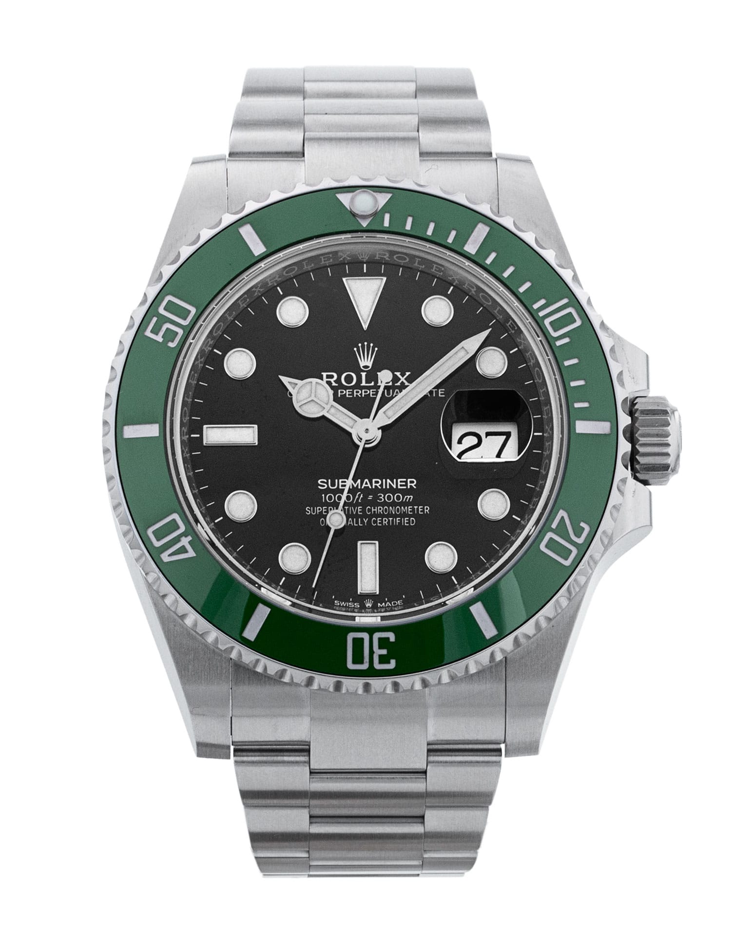 This Rolex Submariner 126610 LV has a black dial and a bracelet strap. This Rolex has undergone a thorough inspection of water resistance, accuracy, functionality and condition to determine the level of reconditioning required to meet our strict standards. It has also been referenced against technical documents and manufacturer records where available to ensure authenticity and a clean history. Our watches have a 24-month warranty for your peace of mind, in conjunction with any remaining manufacturer’s warranty from new or from service. To maintain the manufacturer’s warranty on this watch, it has not been polished in our service centre.