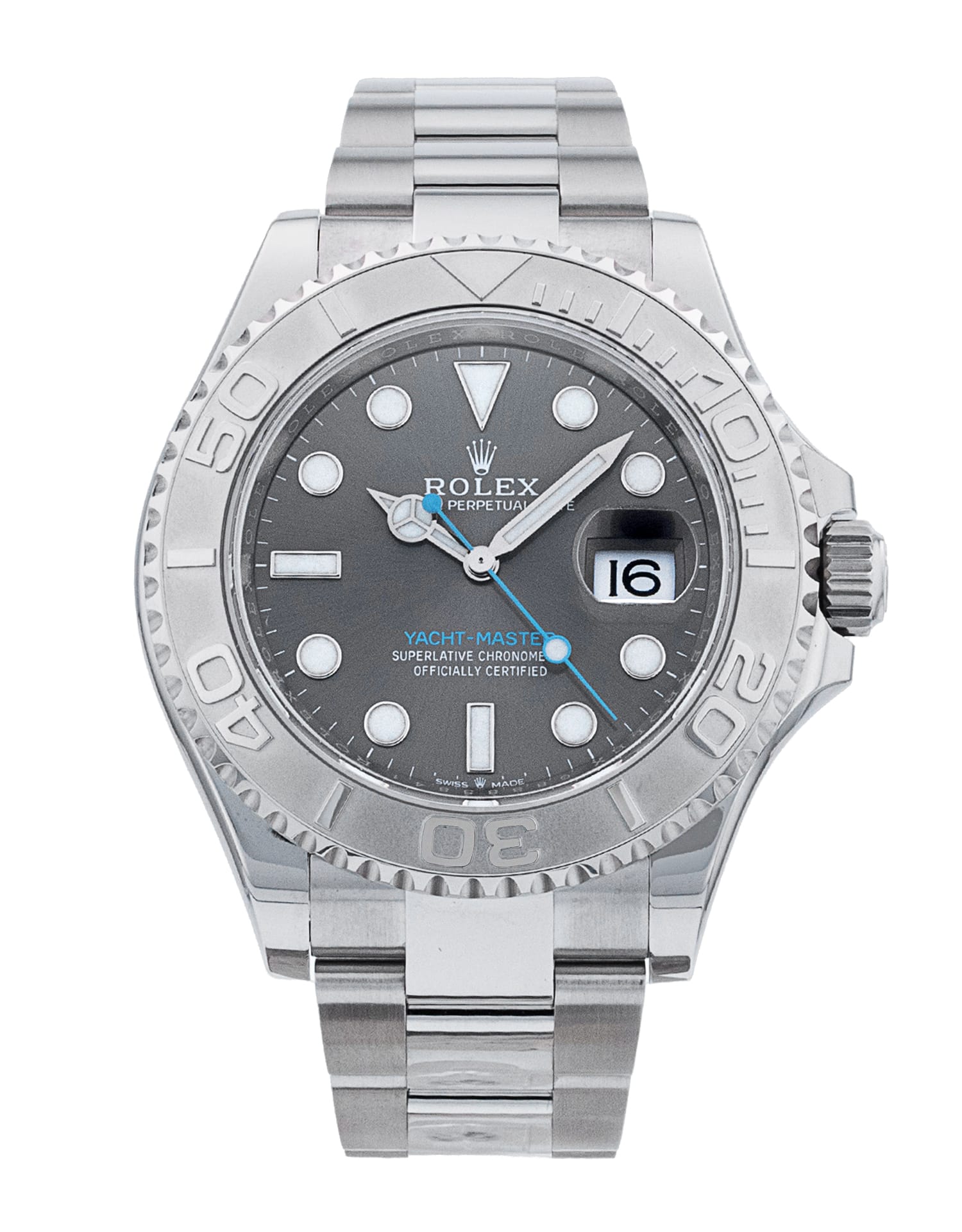 This Rolex Yacht-Master 116622 has a rhodium dial and a bracelet strap. This Rolex has undergone a thorough inspection of water resistance, accuracy, functionality and condition to determine the level of reconditioning required to meet our strict standards. It has also been referenced against technical documents and manufacturer records where available to ensure authenticity and a clean history. Our watches have a 24-month warranty for your peace of mind, in conjunction with any remaining manufacturer’s warranty from new or from service. To maintain the manufacturer’s warranty on this watch, it has not been polished in our service centre.