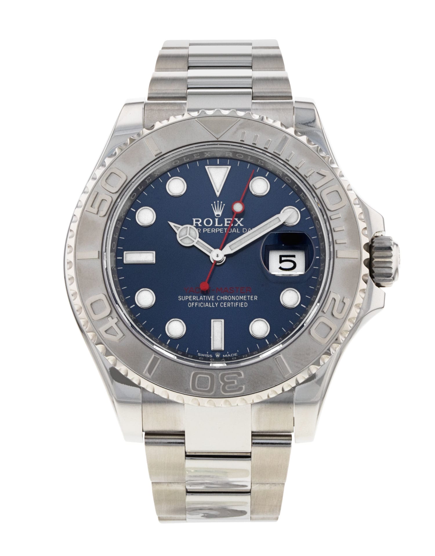 This Rolex Yacht-Master 126622 has a blue dial and a bracelet strap. This Rolex has undergone a thorough inspection of water resistance, accuracy, functionality and condition to determine the level of reconditioning required to meet our strict standards. It has also been referenced against technical documents and manufacturer records where available to ensure authenticity and a clean history. All our watches have a 24-month warranty for your peace of mind. One of our skilled polishing technicians has removed marks on the case and bracelet of this watch, brought about by daily wear and tear, which is why this watch does not come with the remaining manufacturer’s warranty.