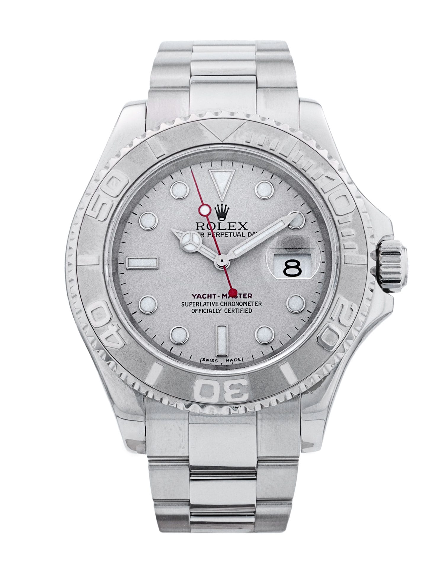 This Rolex Yacht-Master 16622 has a platinum dial and a bracelet strap. This Rolex has undergone a thorough inspection of water resistance, accuracy, functionality and condition to determine the level of reconditioning required to meet our strict standards. It has also been referenced against technical documents and manufacturer records where available to ensure authenticity and a clean history. All our watches have a 24-month warranty for your peace of mind. One of our skilled polishing technicians has removed marks on the case and bracelet of this watch, brought about by daily wear and tear, which is why this watch does not come with the remaining manufacturer’s warranty.