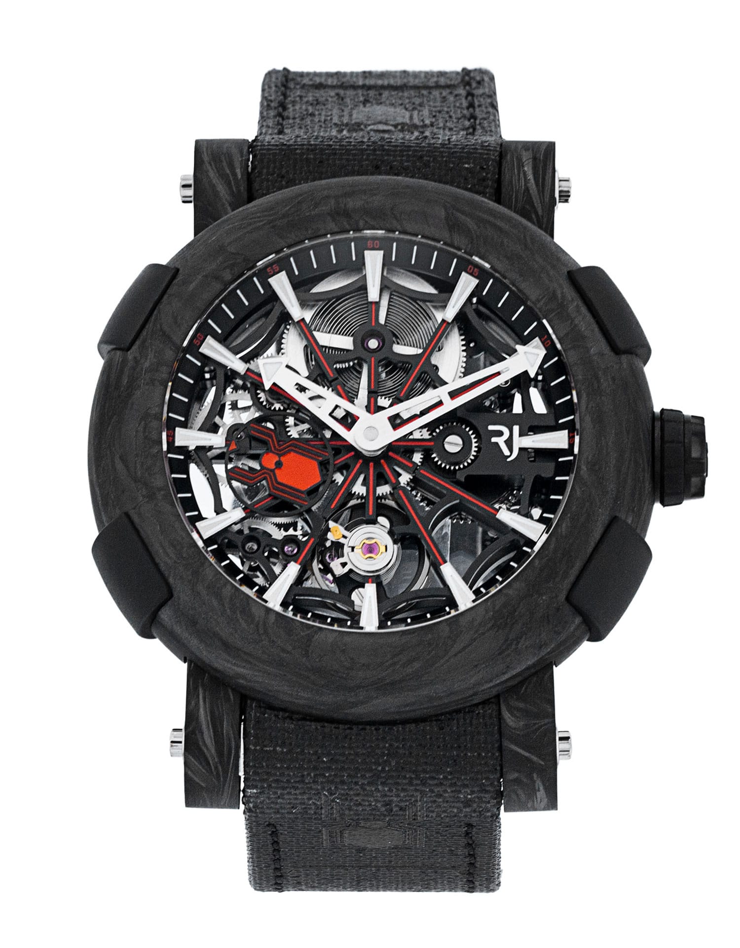 This Romain Jerome Arraw 1C45S.BBBR.1023.PR.SPM19 has a skeleton dial and a fabric strap. This Romain Jerome has undergone a thorough inspection of water resistance, accuracy, functionality and condition to determine the level of reconditioning required to meet our strict standards. It has also been referenced against technical documents and manufacturer records where available to ensure authenticity and a clean history. All our watches have a 24-month warranty for your peace of mind.
