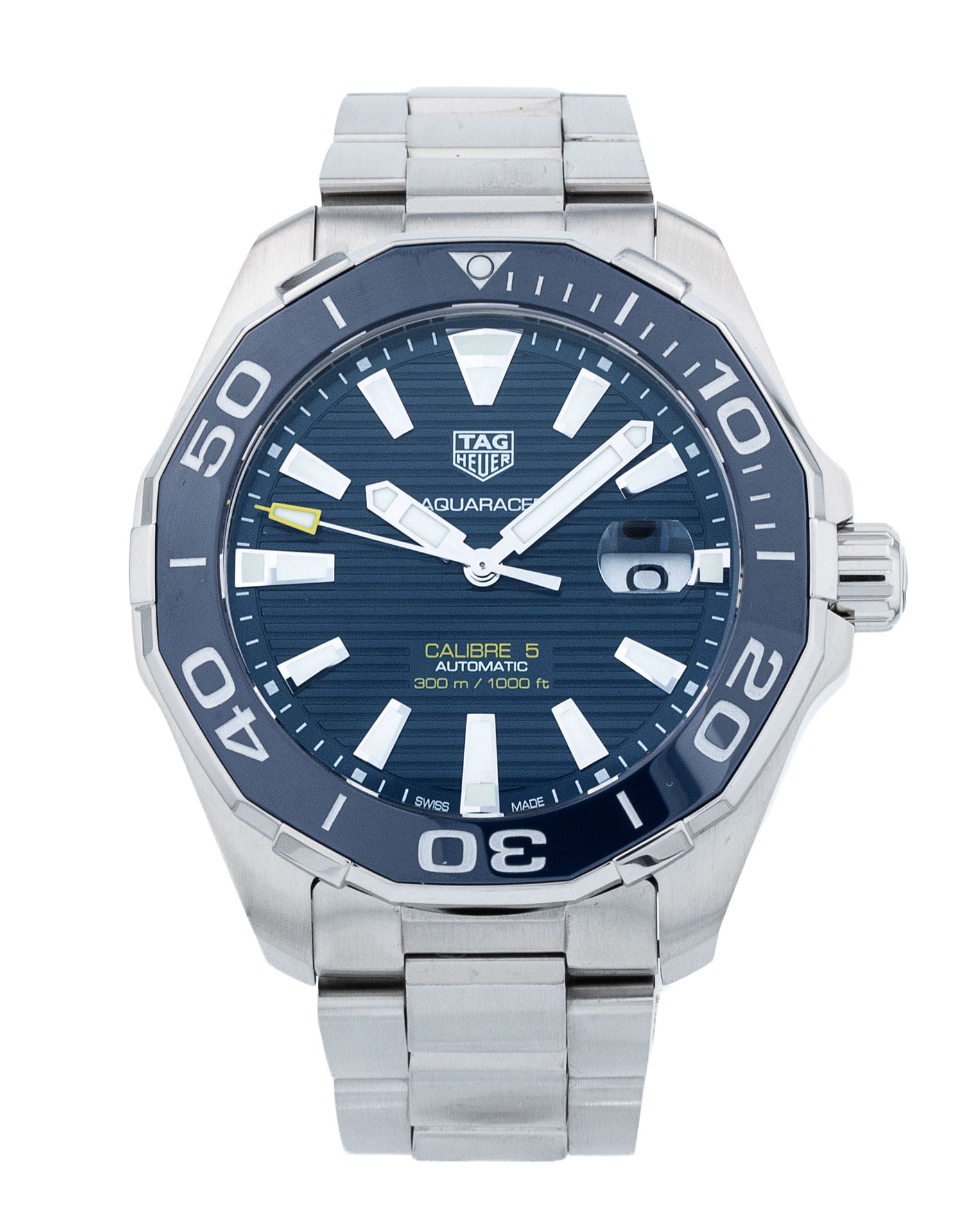 This Tag Heuer Aquaracer WAY201B.BA0927 has a blue baton dial and a bracelet strap. This Tag Heuer has undergone a thorough inspection of accuracy, functionality and condition at our Tag Heuer certified service centre to determine the level of reconditioning required to meet our strict standards. It has also been checked against our records to ensure authenticity. All our watches have a 24-month warranty for your peace of mind.
