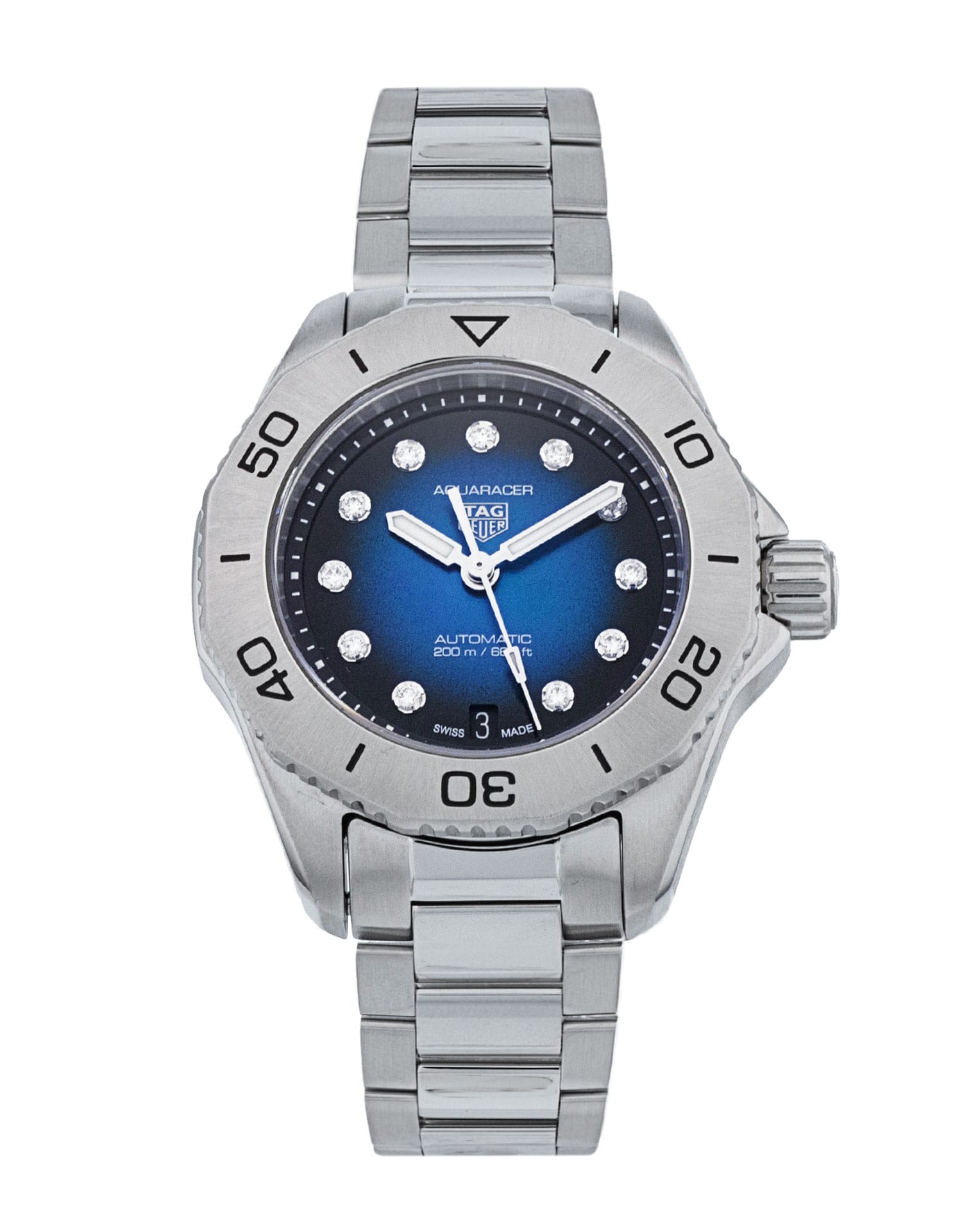 This Tag Heuer Aquaracer WBP2411.BA0622 has a blue diamond dial and a bracelet strap. This Tag Heuer has undergone a thorough inspection of accuracy, functionality and condition at our Tag Heuer certified service centre to determine the level of reconditioning required to meet our strict standards. It has also been checked against our records to ensure authenticity. Our watches have a 24-month warranty for your peace of mind, in conjunction with any remaining manufacturer’s warranty from new or from service.