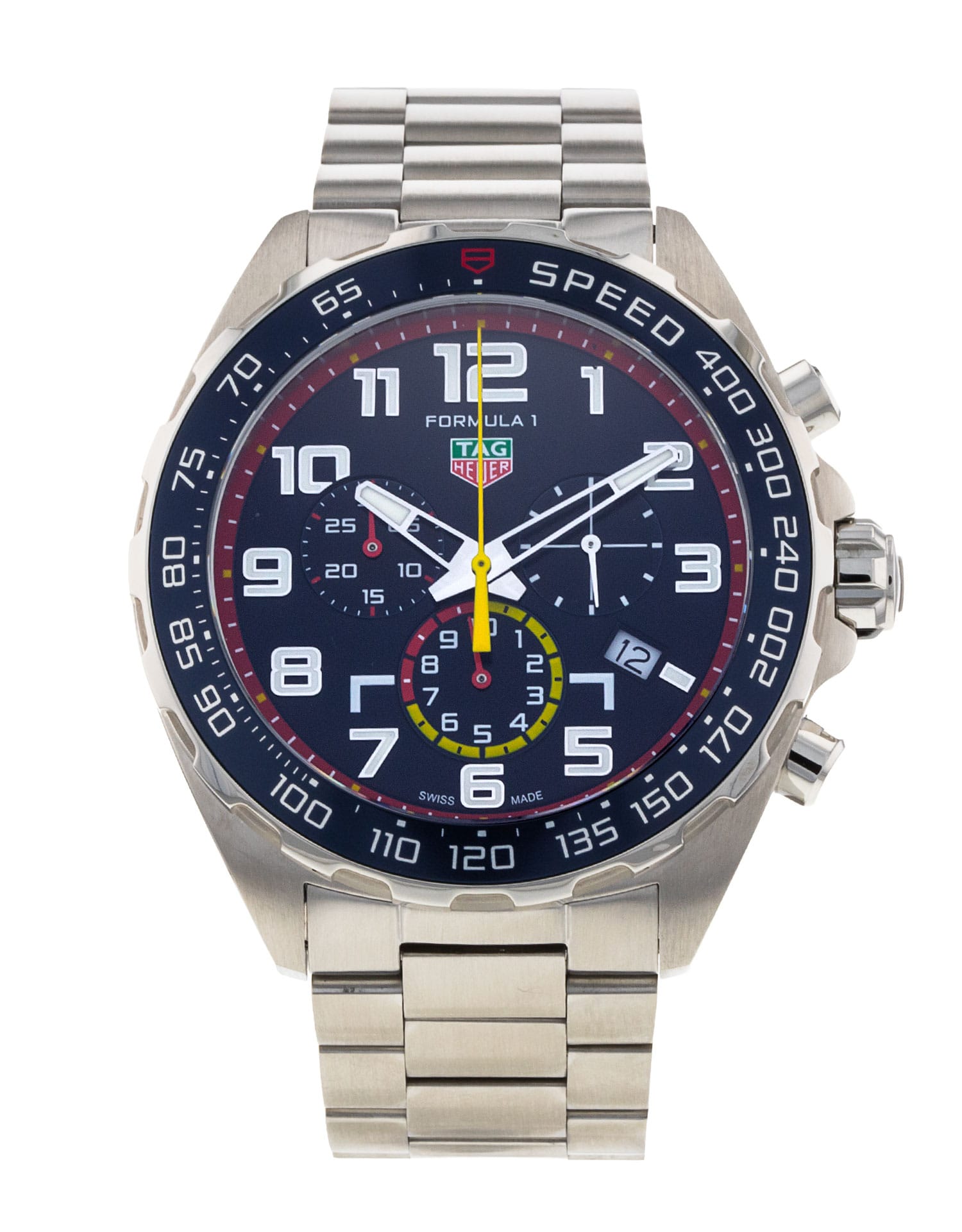 This Tag Heuer Formula 1 CAZ101AL.BA0842 has a blue arabic dial and a bracelet strap. This Tag Heuer has undergone a thorough inspection of accuracy, functionality and condition at our Tag Heuer certified service centre to determine the level of reconditioning required to meet our strict standards. It has also been checked against our records to ensure authenticity. All our watches have a 24-month warranty for your peace of mind.