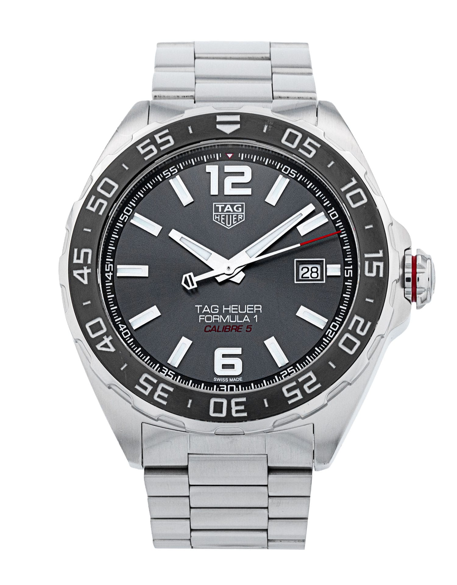 This Tag Heuer Formula 1 WAZ2011.BA0842 has a anthracite dial and a bracelet strap. This Tag Heuer has undergone a thorough inspection of accuracy, functionality and condition at our Tag Heuer certified service centre to determine the level of reconditioning required to meet our strict standards. It has also been checked against our records to ensure authenticity. All our watches have a 24-month warranty for your peace of mind.