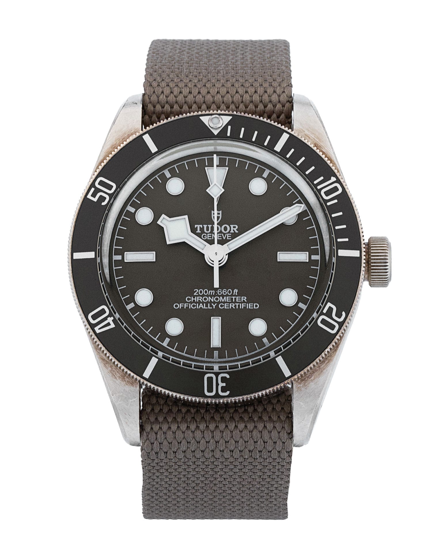 This Tudor Black Bay 58 M79010SG-0002 has a taupe dial and a fabric strap. This Tudor has undergone a thorough inspection of water resistance, accuracy, functionality and condition to determine the level of reconditioning required to meet our strict standards. It has also been referenced against technical documents and manufacturer records where available to ensure authenticity and a clean history. Our watches have a 24-month warranty for your peace of mind, in conjunction with any remaining manufacturer’s warranty from new or from service. To maintain the manufacturer’s warranty on this watch, it has not been polished in our service centre.