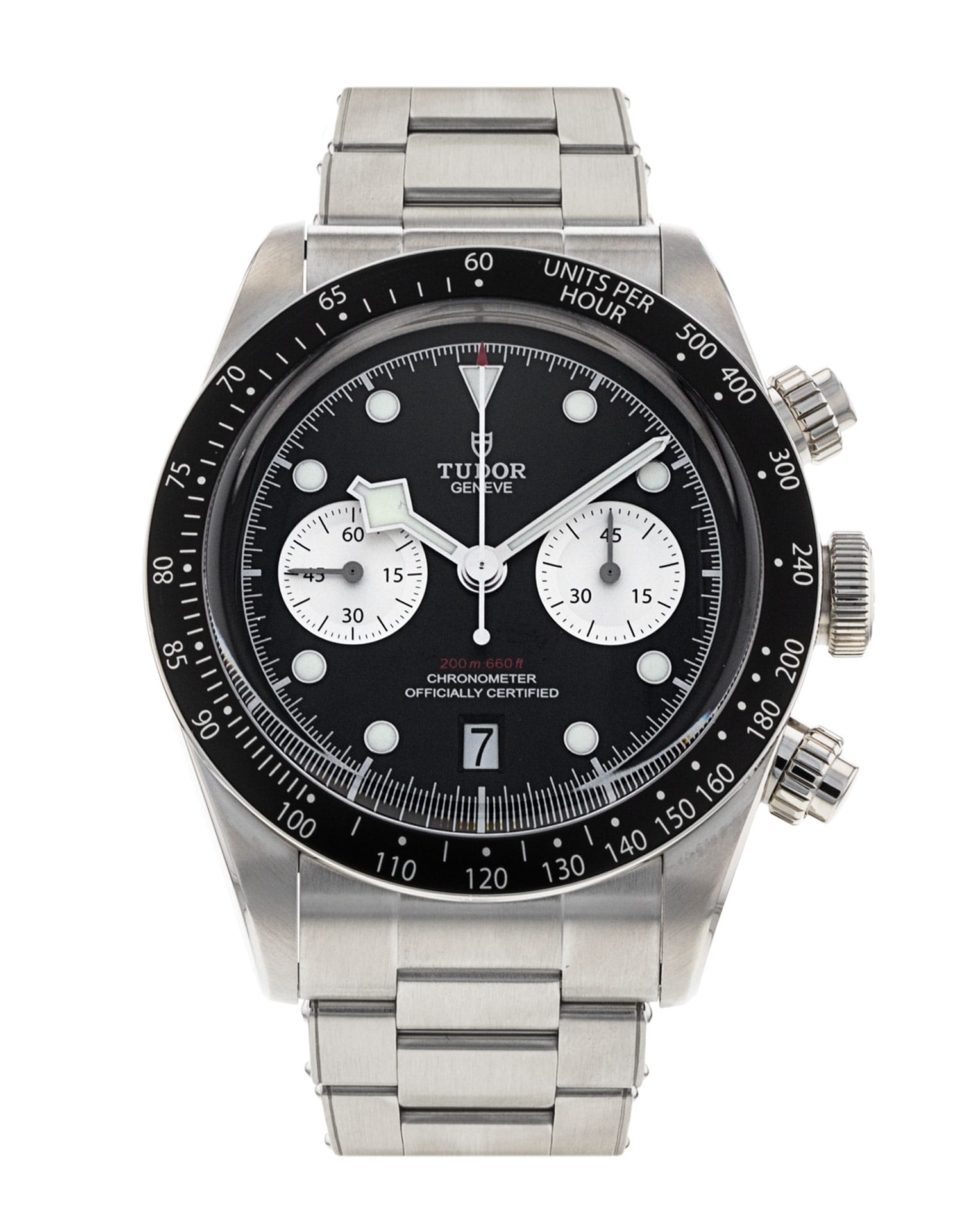 This Tudor Black Bay Chrono M79360N-0001 has a black dial and a bracelet strap. This Tudor has undergone a thorough inspection of water resistance, accuracy, functionality and condition to determine the level of reconditioning required to meet our strict standards. It has also been referenced against technical documents and manufacturer records where available to ensure authenticity and a clean history. All our watches have a 24-month warranty for your peace of mind. One of our skilled polishing technicians has removed marks on the case and bracelet of this watch, brought about by daily wear and tear, which is why this watch does not come with the remaining manufacturer’s warranty.