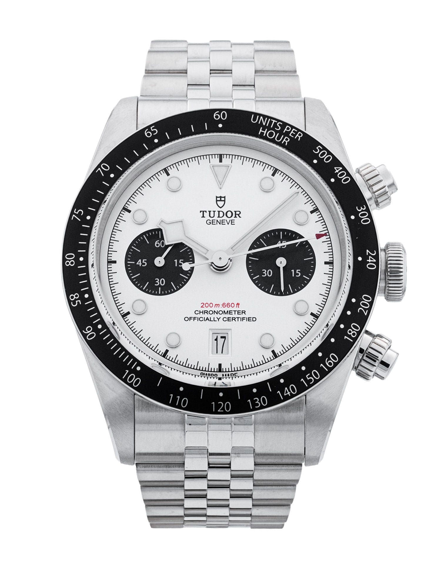 This Tudor Black Bay Chrono M79360N-0014 has a white dial and a bracelet strap. This Tudor has undergone a thorough inspection of water resistance, accuracy, functionality and condition to determine the level of reconditioning required to meet our strict standards. It has also been referenced against technical documents and manufacturer records where available to ensure authenticity and a clean history. Our watches have a 24-month warranty for your peace of mind, in conjunction with any remaining manufacturer’s warranty from new or from service. To maintain the manufacturer’s warranty on this watch, it has not been polished in our service centre.