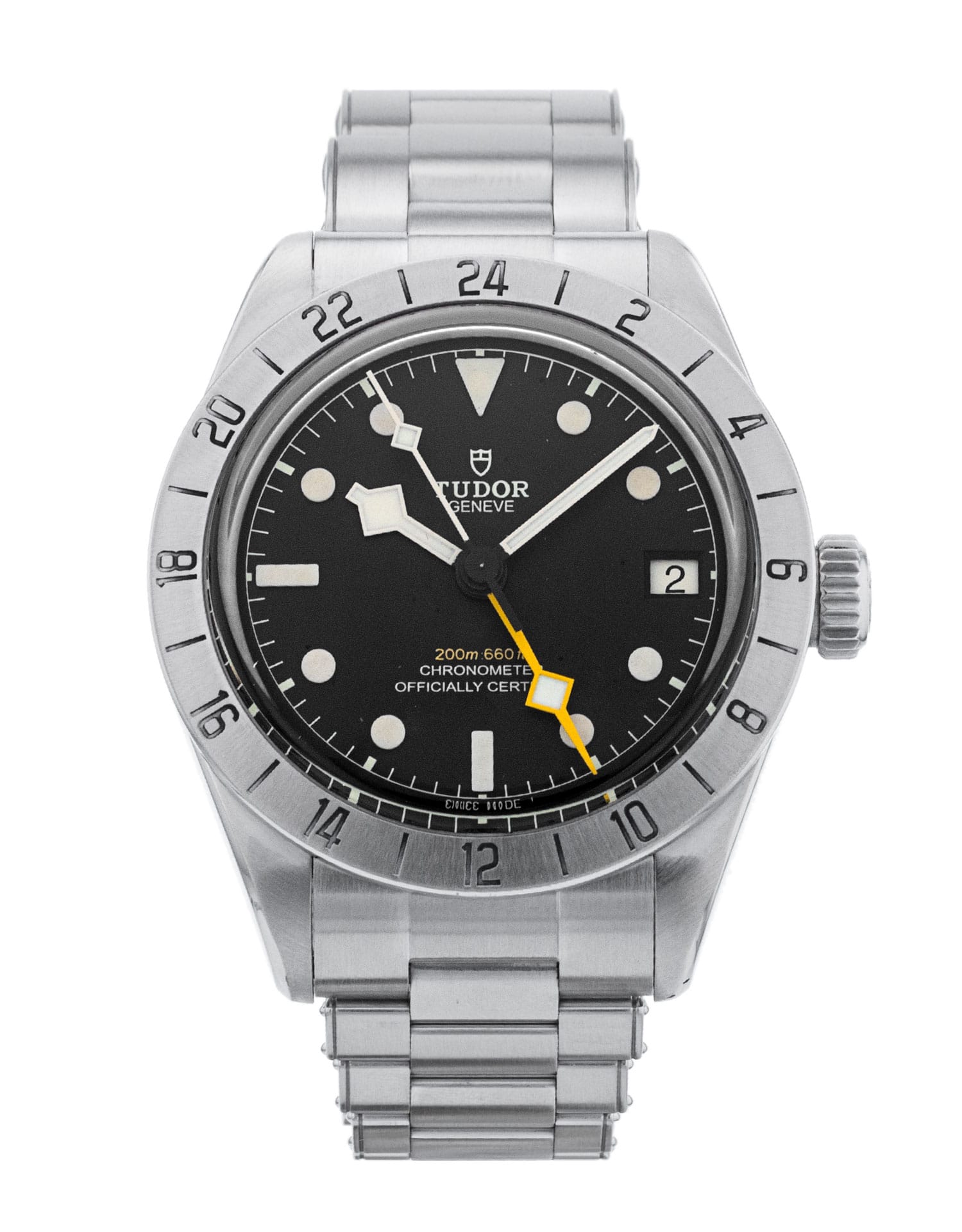 This Tudor Black Bay Pro M79470-0001 has a black dial and a bracelet strap. This Tudor has undergone a thorough inspection of water resistance, accuracy, functionality and condition to determine the level of reconditioning required to meet our strict standards. It has also been referenced against technical documents and manufacturer records where available to ensure authenticity and a clean history. Our watches have a 24-month warranty for your peace of mind, in conjunction with any remaining manufacturer’s warranty from new or from service. To maintain the manufacturer’s warranty on this watch, it has not been polished in our service centre.