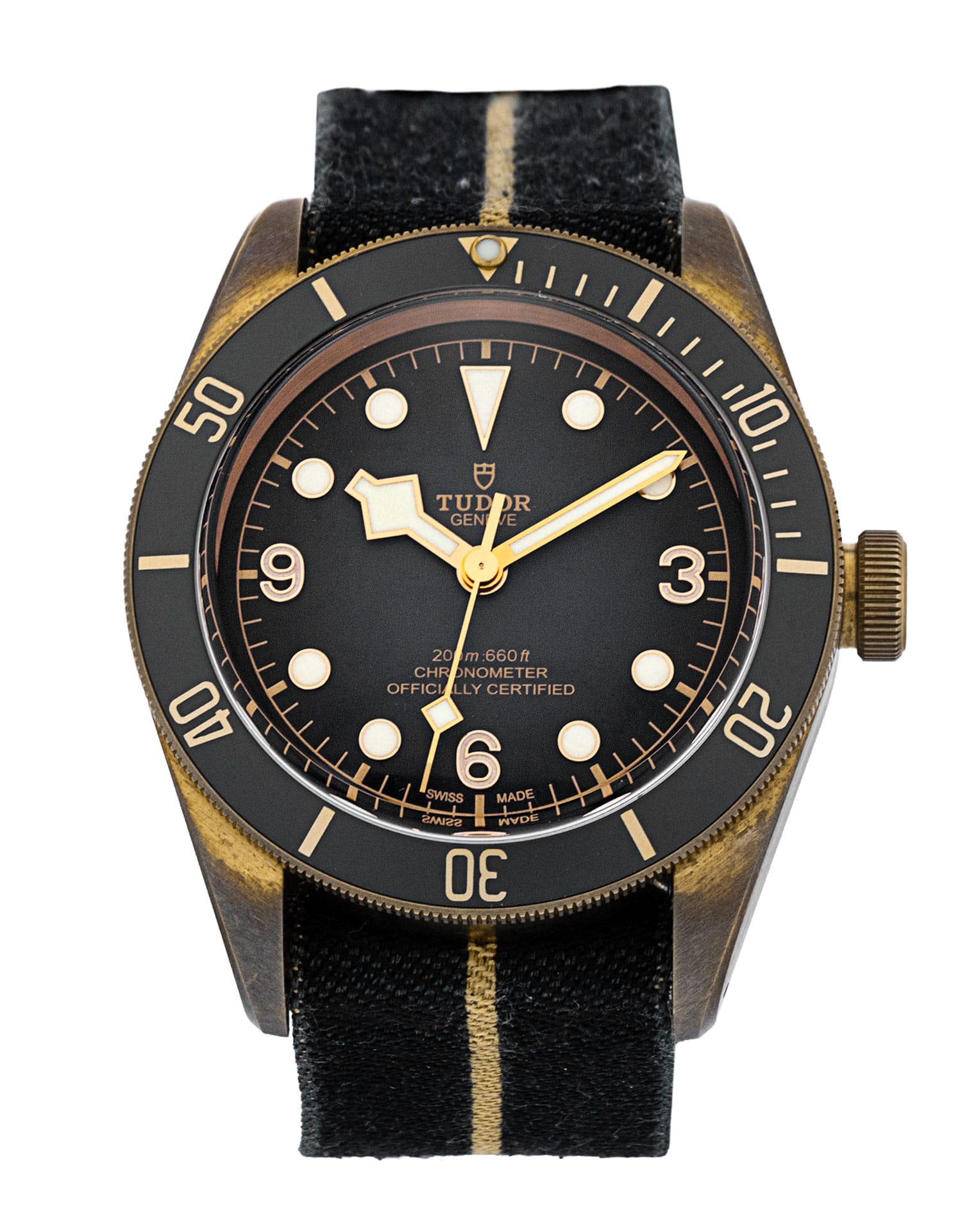 This Tudor Black Bay M79250BA-0002 has a grey quarter arabic dial and a fabric strap. This Tudor has undergone a thorough inspection of water resistance, accuracy, functionality and condition to determine the level of reconditioning required to meet our strict standards. It has also been referenced against technical documents and manufacturer records where available to ensure authenticity and a clean history. Our watches have a 24-month warranty for your peace of mind, in conjunction with any remaining manufacturer’s warranty from new or from service. To maintain the manufacturer’s warranty on this watch, it has not been polished in our service centre.