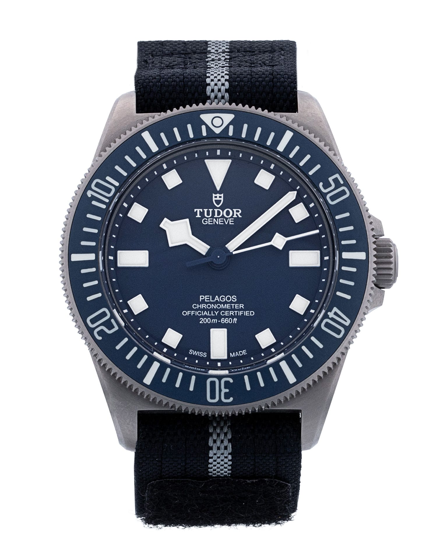 This Tudor Pelagos FXD M25707B/23-0001 has a blue dial and a fabric strap. This Tudor has undergone a thorough inspection of water resistance, accuracy, functionality and condition to determine the level of reconditioning required to meet our strict standards. It has also been referenced against technical documents and manufacturer records where available to ensure authenticity and a clean history. Our watches have a 24-month warranty for your peace of mind, in conjunction with any remaining manufacturer’s warranty from new or from service. To maintain the manufacturer’s warranty on this watch, it has not been polished in our service centre.