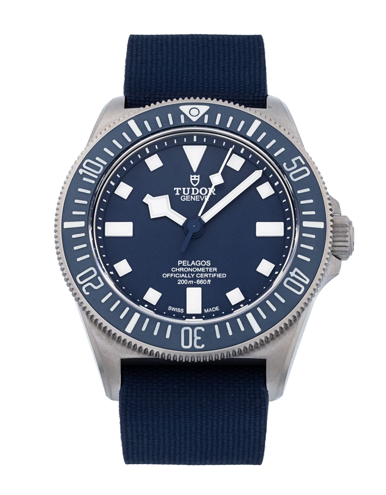 This Tudor Pelagos FXD M25707B/23-0001 has a blue dial and a rubber strap. This Tudor has undergone a thorough inspection of water resistance, accuracy, functionality and condition to determine the level of reconditioning required to meet our strict standards. It has also been referenced against technical documents and manufacturer records where available to ensure authenticity and a clean history. Our watches have a 24-month warranty for your peace of mind, in conjunction with any remaining manufacturer’s warranty from new or from service. To maintain the manufacturer’s warranty on this watch, it has not been polished in our service centre.