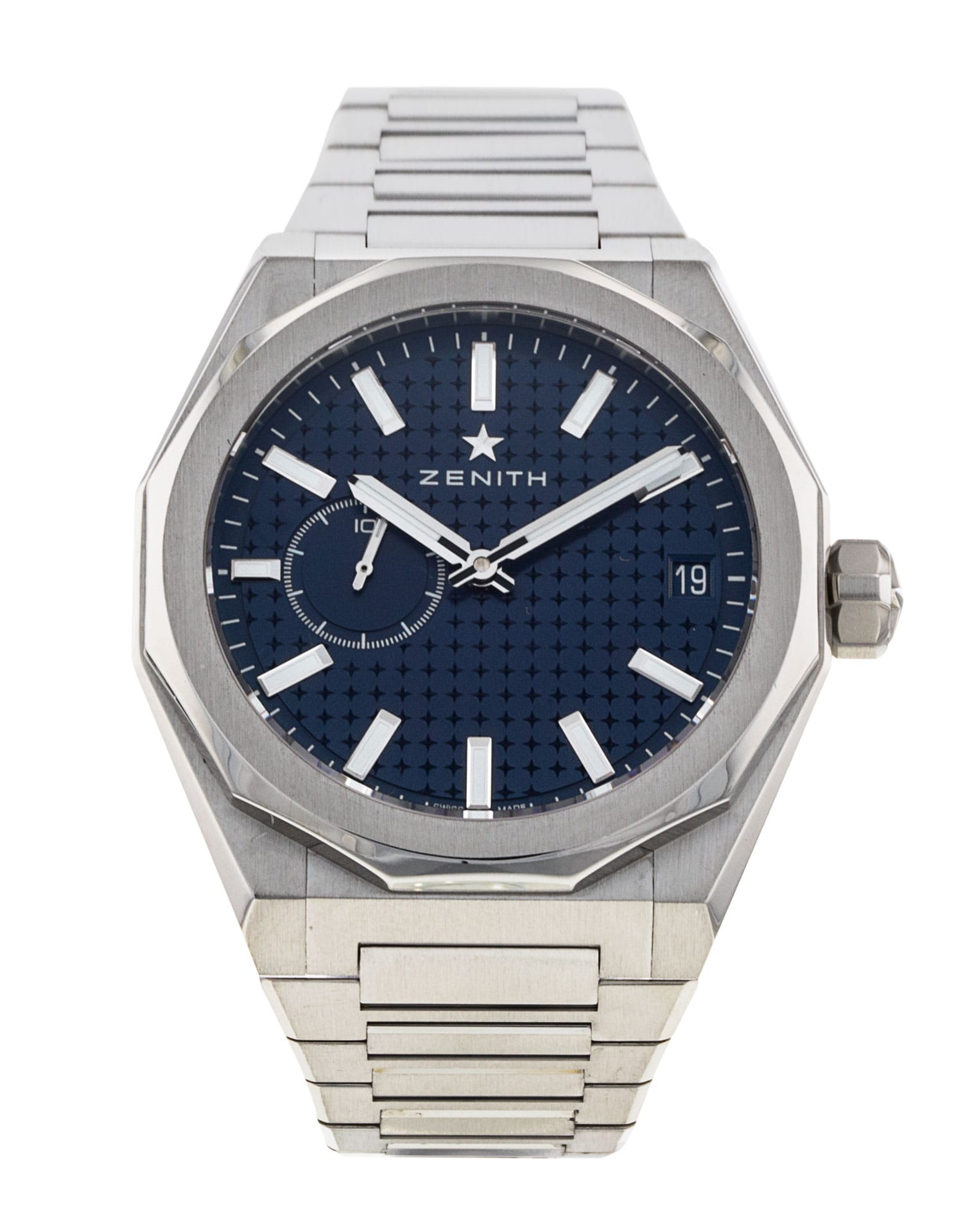 This Zenith Defy 03.9300.3620/51.I001 has a blue baton dial and a bracelet strap. This Zenith has undergone a thorough inspection of water resistance, accuracy, functionality and condition to determine the level of reconditioning required to meet our strict standards. It has also been referenced against technical documents and manufacturer records where available to ensure authenticity and a clean history. All our watches have a 24-month warranty for your peace of mind.